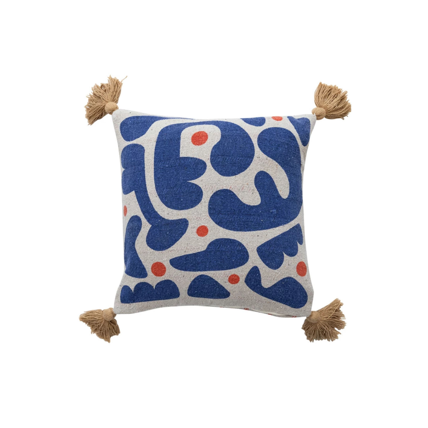 Blue and Orange Recycled Cotton Pillow with Tassels