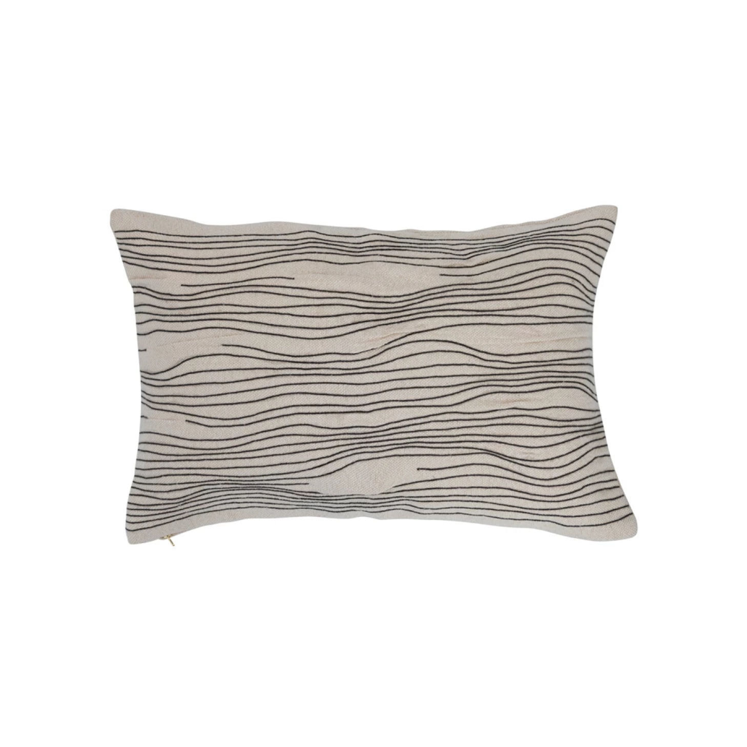 Cotton Jute Lumbar Pillow with Embroidered Lines