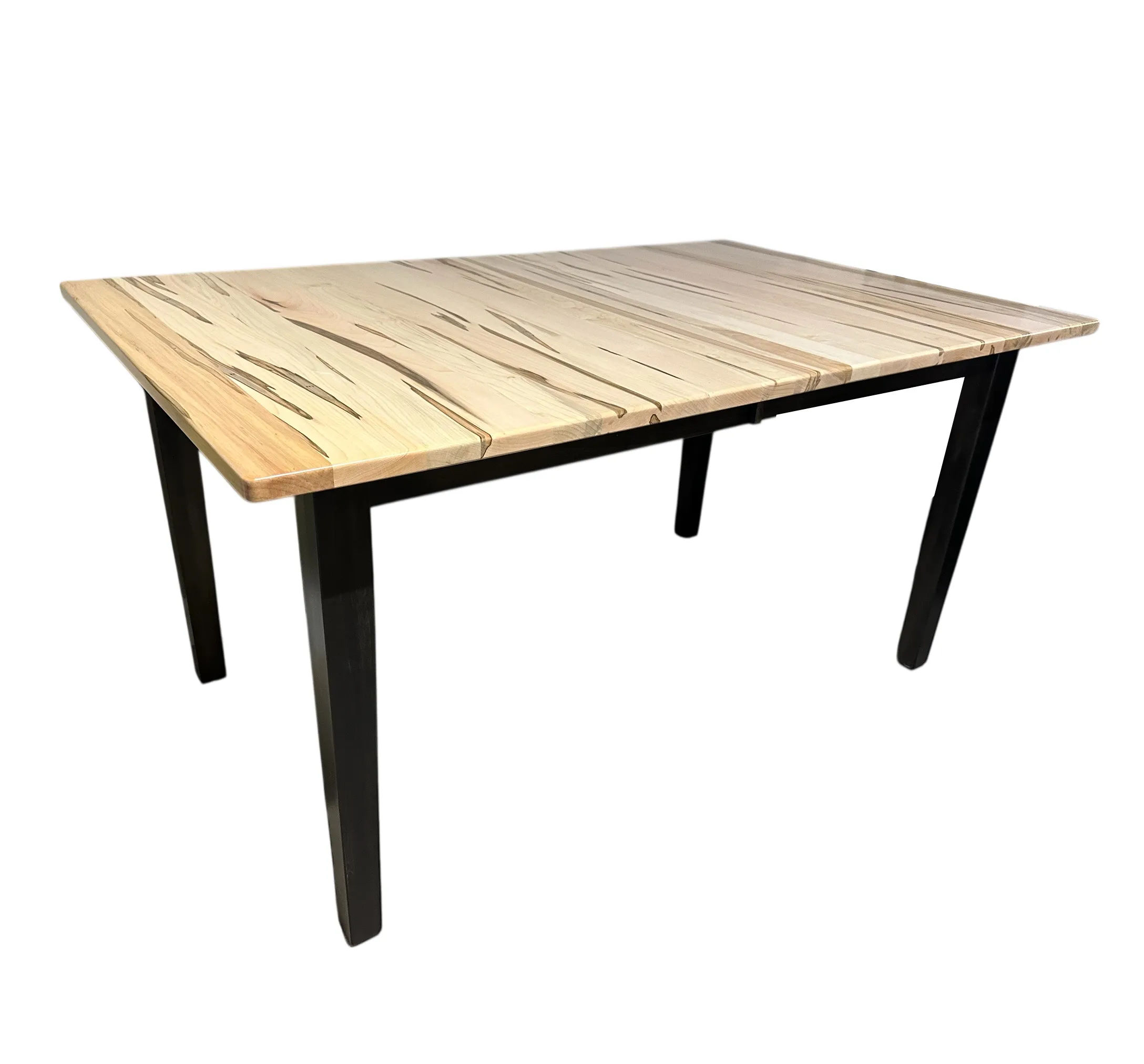 38x60 Natural Finish Wormy Maple Square Dining Table with Black Silk Finish Legs