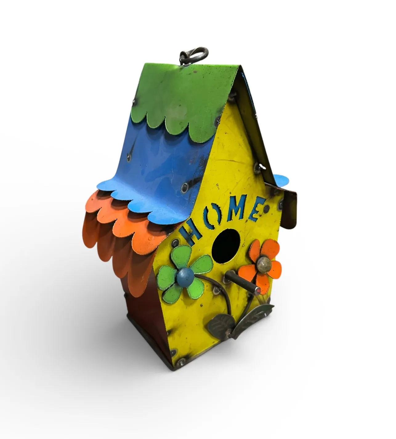 Metal Multicolor Birdhouse with Flowers with Hanging Hook