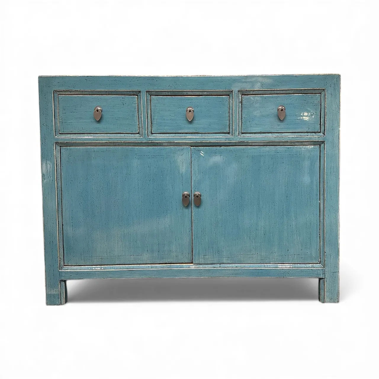 Distressed Patina Blue Reclaimed Cabinet with 2 Doors and 3 Drawers