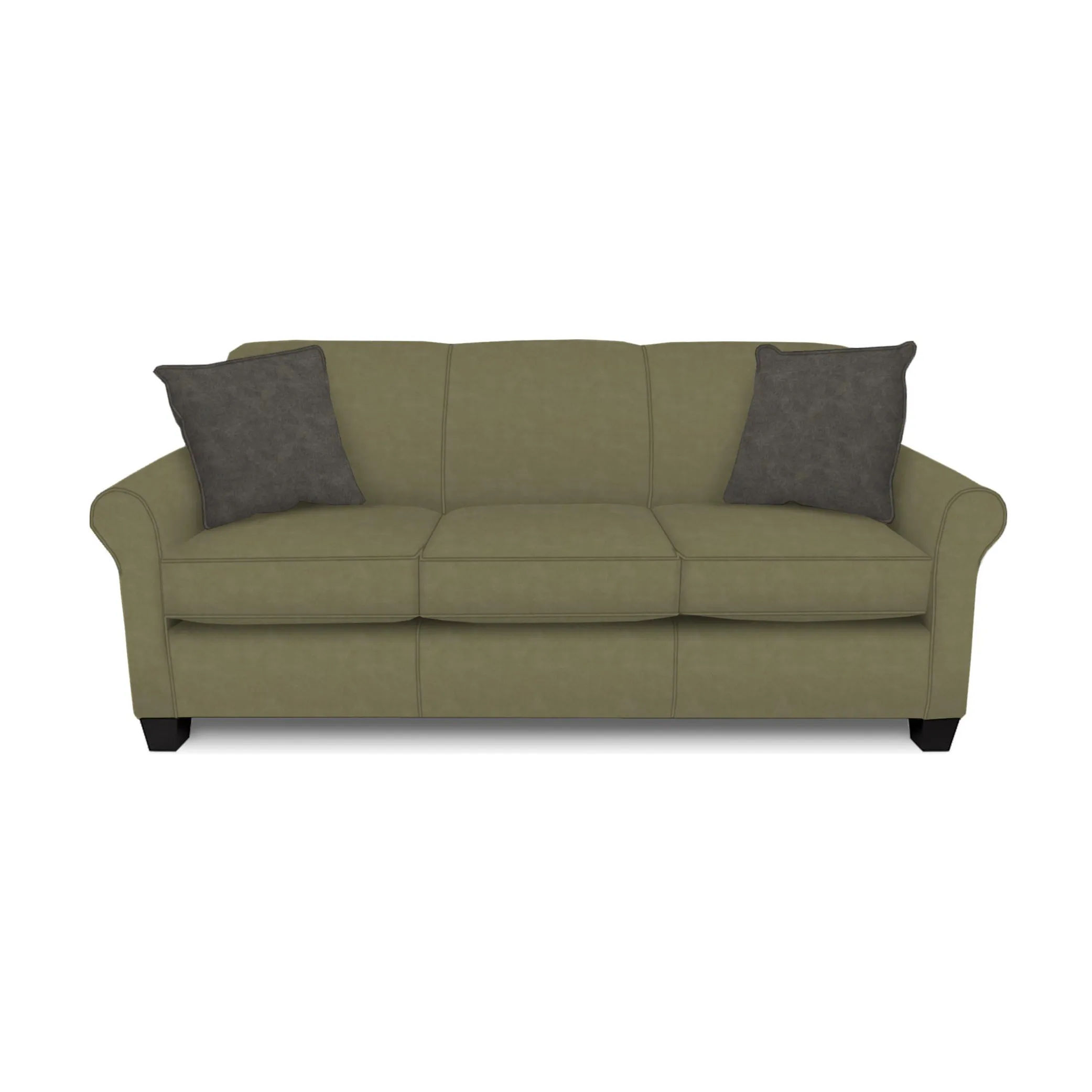 Major Sage Fabric 3 Cushion Sofa with Major Slate Fabric Pillows
